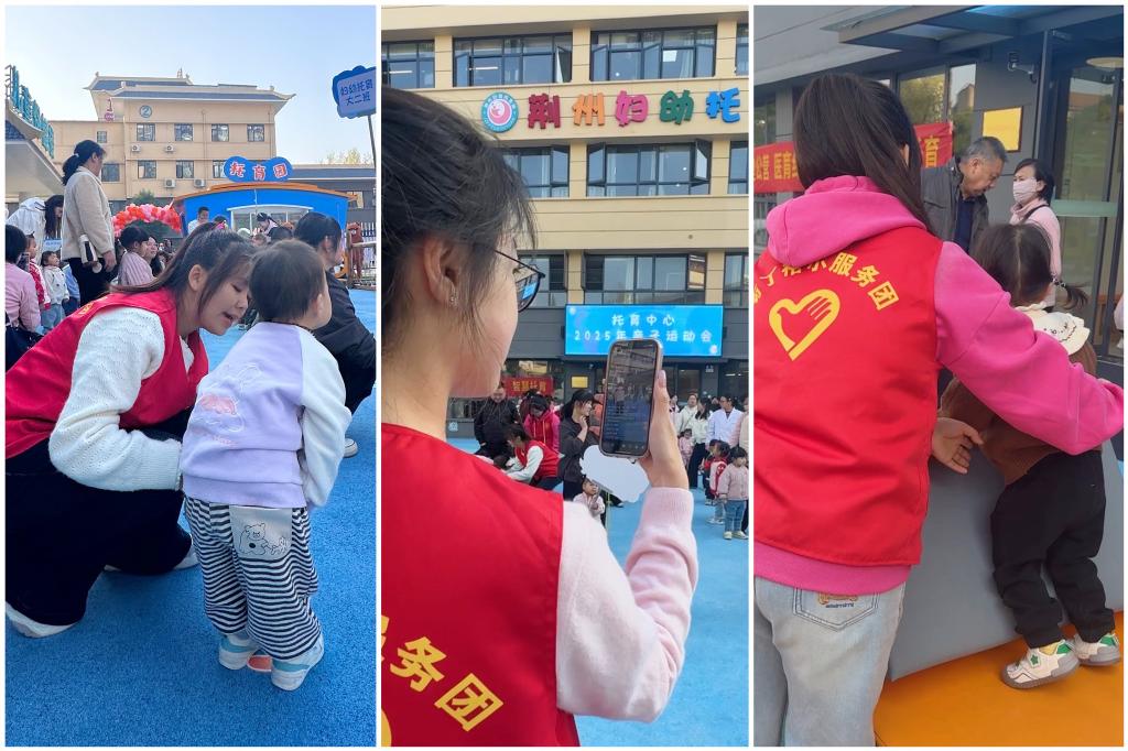活动当天,志愿者们早早抵达托育园,在托育园老师的指导下,迅速投入到紧张而有序的工作中。她们有的负责运动会平台的线上直播工作,有的负责捕捉活动精彩瞬间,更多的同学深入到孩子们中间,用鼓励的话语耐心引导孩子们参与趣味运动项目,并时刻关注孩子们的安全与情绪。志愿者们饱满的精神状态、认真的工作态度和专业的服务能力,赢得了托育中心老师、家长和孩子们的一致好评。