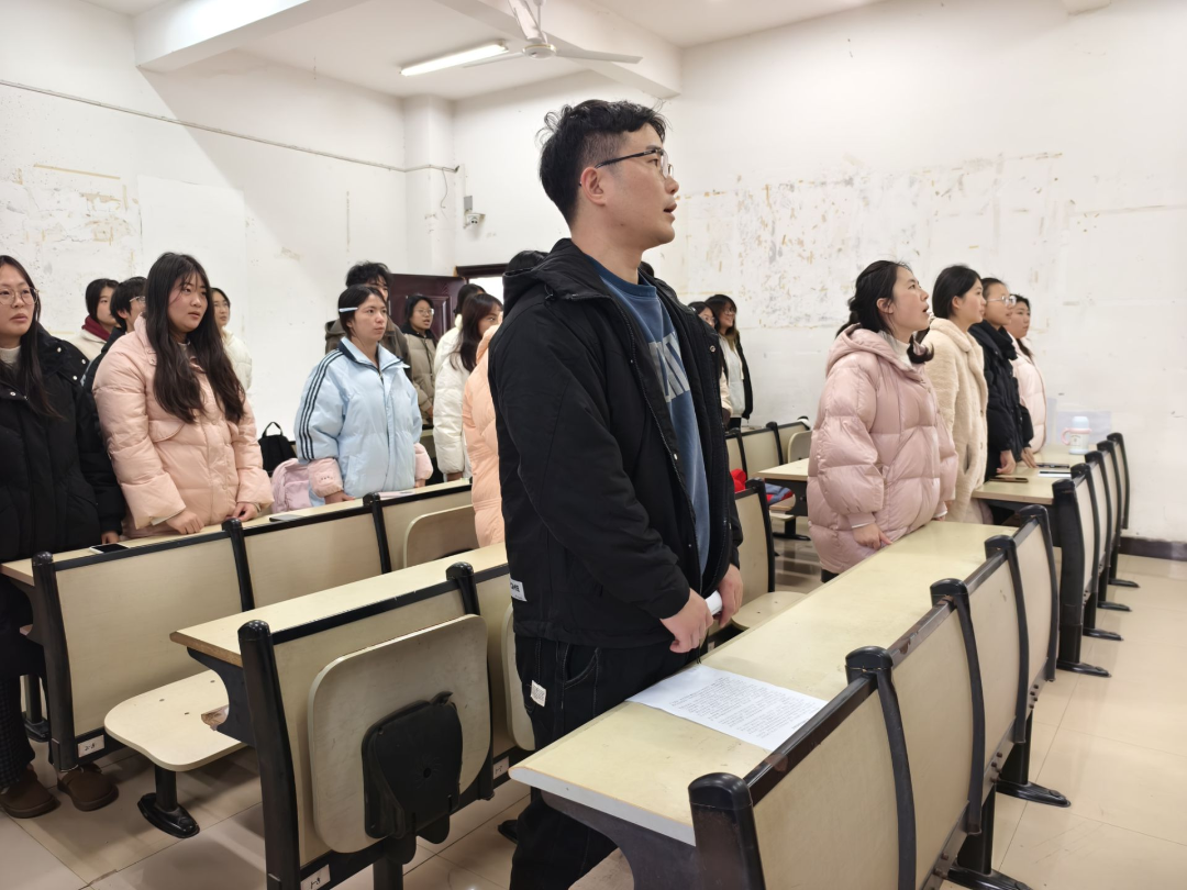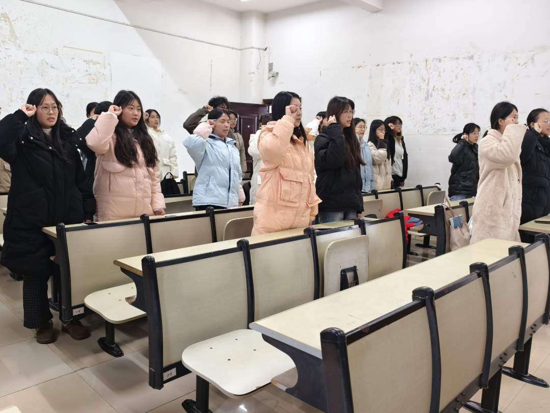 本网讯(通讯员:付佳仪 原昕雨 高婷 刘思琪)青春如歌,团旗如画。12月22日,湖北中医药高等专科学校护理学院团总支在教学楼203教室举行了新团员入团宣誓仪式。