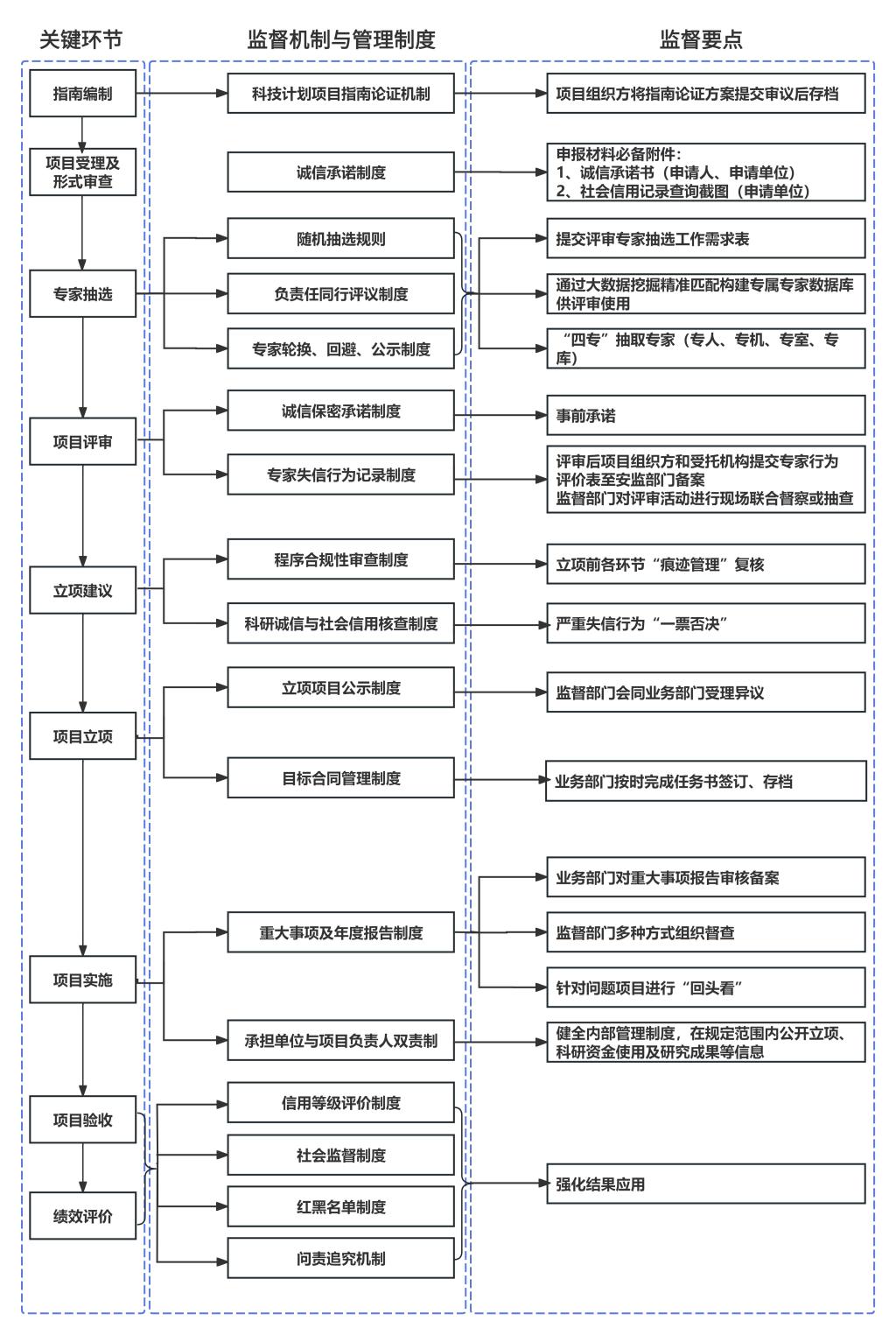 第六条 省科技厅建立覆盖省级科技计划管理实施全过程嵌入式监督评估机制。重点对指南编制、专家抽选、立项评审、项目实施、结题验收、绩效评价等进行监督检查,对省级科技计划总体实施和资金使用情况及效果进行评估。