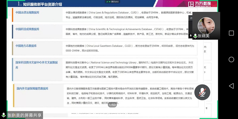 2020年7月2日下午,思政课部教师利用腾讯会议APP(会议号477833894)参加了学校电子资源使用培训会。本次电视电话会议的主讲人分别是同方知网湖北分公司高级培训讲师程蔚迪、万方数据公司高级销售经理张晓美、武汉超星数图教育科技有限公司销售经理朱庆明,其发言的主题分别是《中国知网助力科研创新》、《新媒体、小技巧打造高效率—万方智搜》以及《超星数字资源的移动获取》。本次培训进一步加强了思政课部教师对中国知网、万方数据库以及超星数字资源的认识和利用技能。