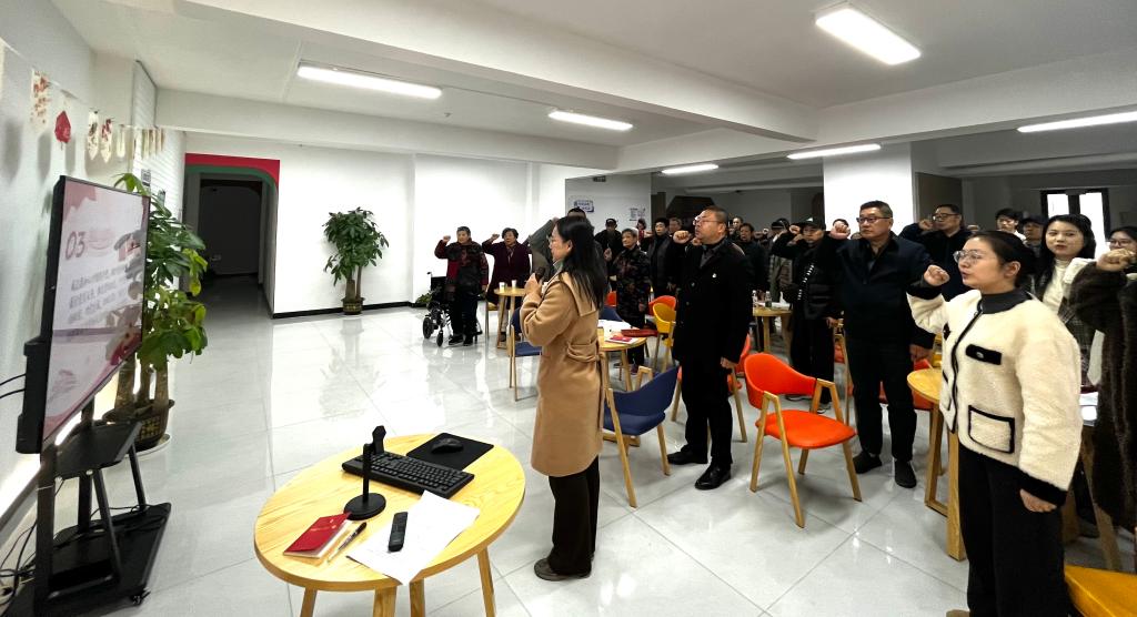 为深入学习贯彻习近平新时代中国特色社会主义思想,进一步加强党员教育,提升党员党性修养,2025年12月11日下午,马克思主义学院党支部在武德路社区召开12月主题党日活动(政治理论学习),会议由支部书记胡芳同志主持。