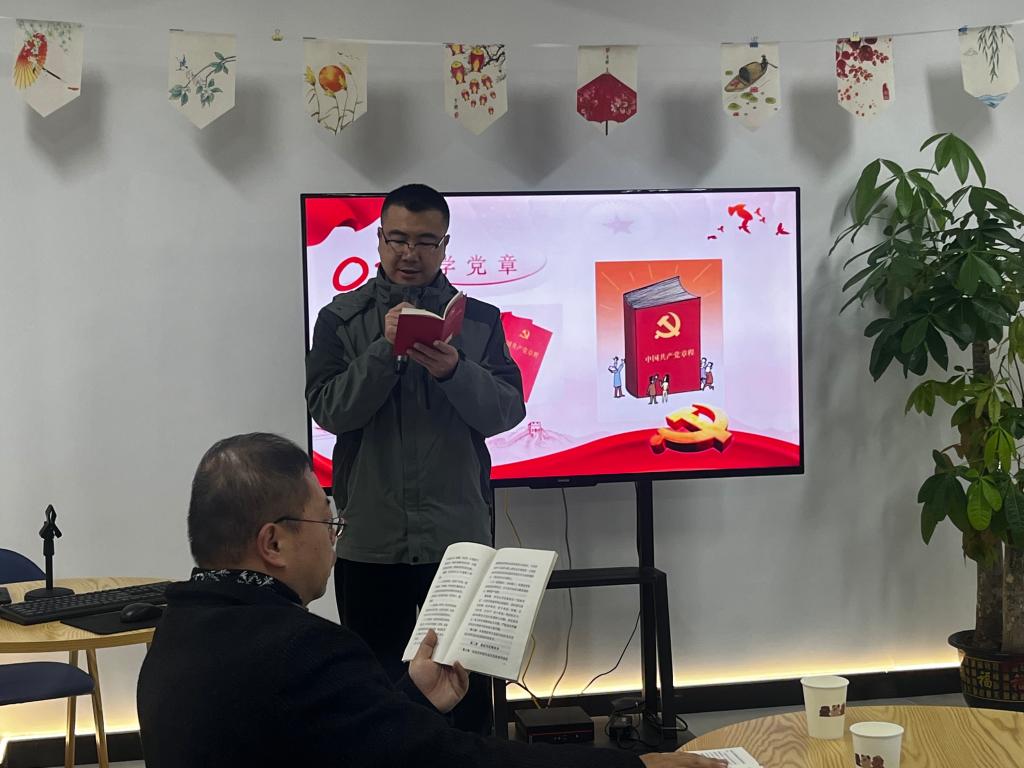 首先,韩旭领学党的二十大修改后的新党章。紧接着,熊亮领学《中国共产党纪律处分条例》、重温入党誓词、缴纳本月党费、尹文娟背诵社会主义核心价值观。