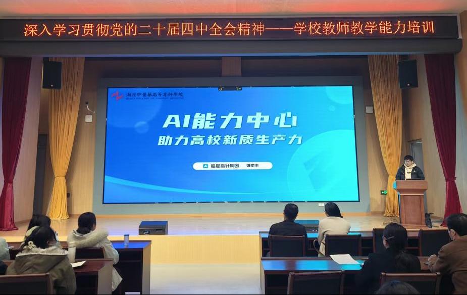 刘仰磊围绕“人工智能赋能教学创新”主题,深入解析了AI技术如何助力高校培育新质生产力。超星指针集团培训师则聚焦“AI能力中心”的实际应用,系统指导教师在课程设计、课堂互动、作业评价等环节中有效运用AI工具,助力教师将智能技术转化为教学创新的有力支撑。