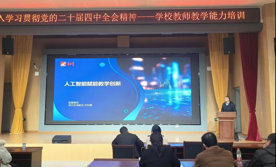本网讯(通讯员:高子童)为全面提升教师队伍信息化教学能力,12月11日下午,图书馆(信息化建设办公室)邀请超星集团湖北区域副总刘仰磊,对学校专兼职教师及两所直属附属医院教师开展了“AI能力中心”使用的专题培训,培训会议由教务处处长鲜于丽主持,学校党委委员、副校长袁先雄参加会议并作现场点评。