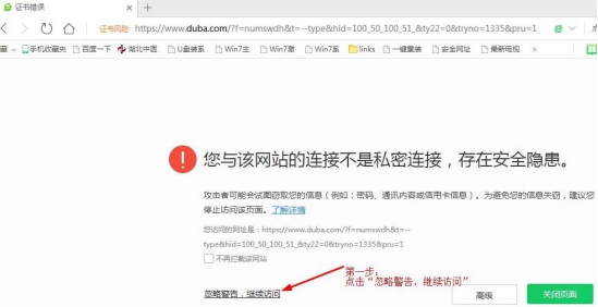 第一步:打开浏览器,自动弹出“上网认证”界面(默认自动弹出),根据要求输入账号和密码。如果没有弹出对话框,出现以下情况,请“忽略警告”后,继续操作。