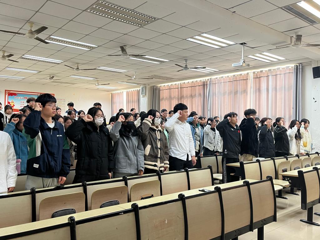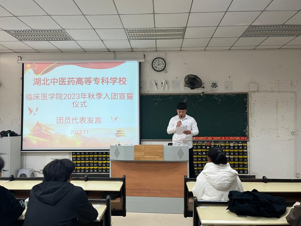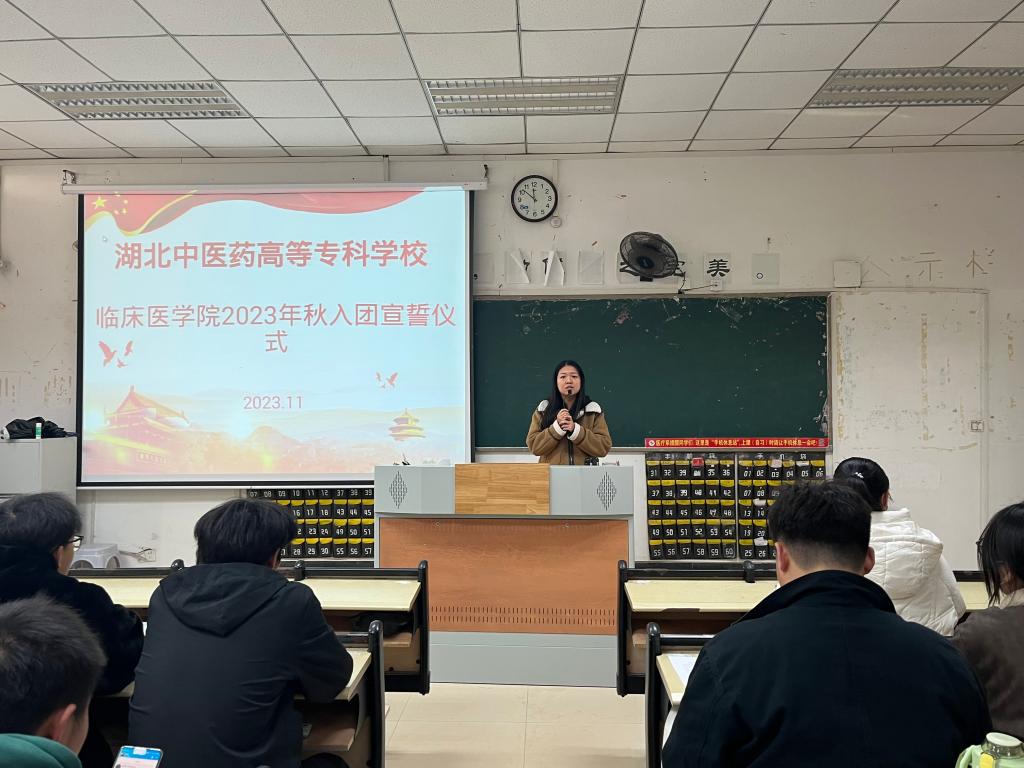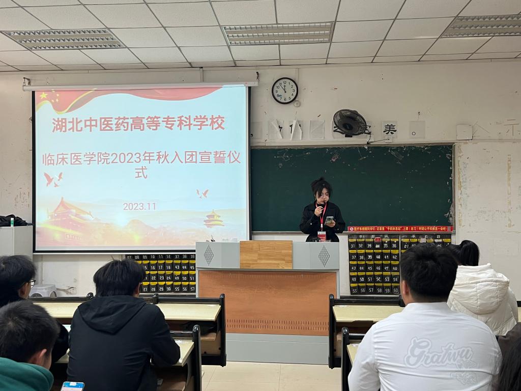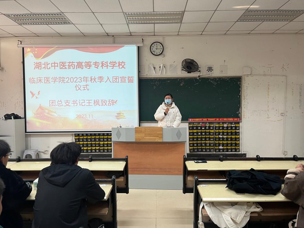 本网讯(学生记者:孙美柠 黄文杰)11月24日11:40临床医学院于教学楼407教室开展2023年秋季新团员入团宣誓仪式,团总支书记王枫、学生科王书琪老师及89名新团员参会。本次会议由王书琪老师主持。