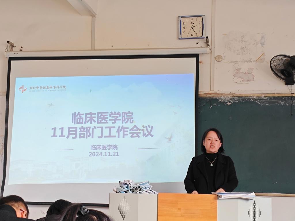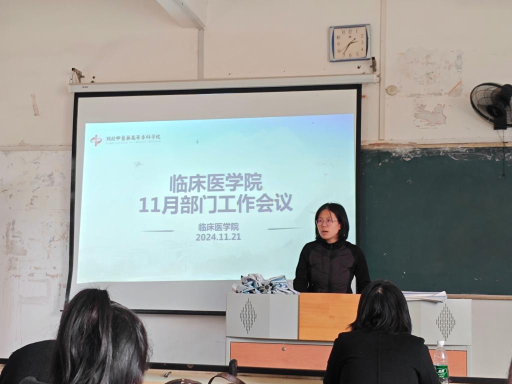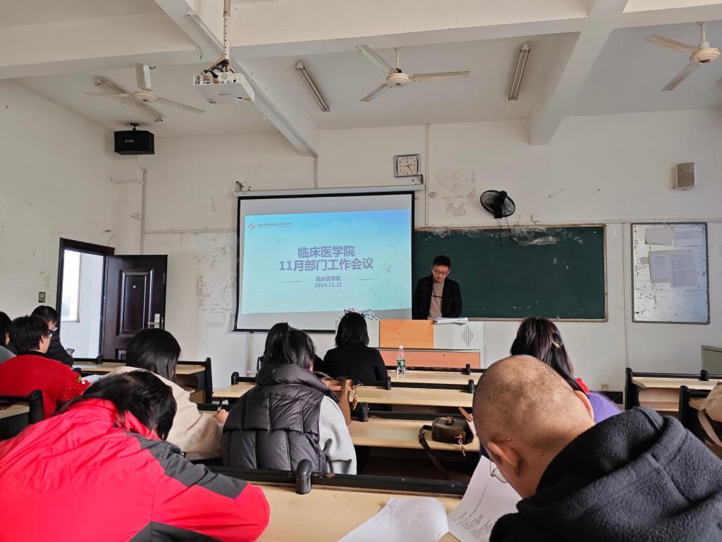 11月21日,临床医学院在教学楼203教室召开11月份工作会议,此次会议由学院院长曹礼荣主持,全体教师参加会议。