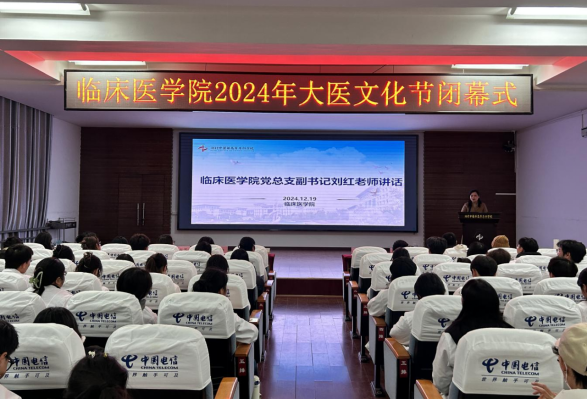 12月19日晚,临床医学院大医文化节在学术报告厅圆满闭幕,同时对在文化节期间涌现出的先进集体与个人进行了表彰。院长曹礼荣、党总支副书记刘红、学院老师、学生代表等300余人参会,闭幕式由杨英老师主持。