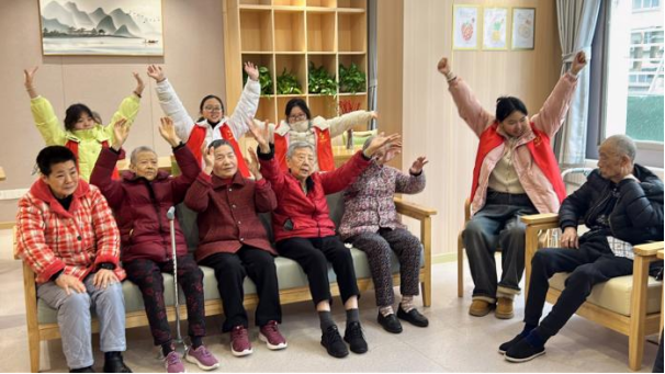 志愿者们为老人们带来了精彩的歌舞表演,轻快的旋律和舞步点燃了现场气氛;表演后,大家为当天过生日的老人举办了庆生仪式,烛光闪烁、生日歌声悠扬,老人们笑容满面;志愿者们送上新鲜水果和小蛋糕,并与医护人员一起为老人修剪指甲,细心照料每位老人;大家带领老人做集体早操,气氛愉悦轻松,老人们仿佛恢复了年轻时的活力;在趣味小游戏中,志愿者们与老人建立了深厚的情感纽带。