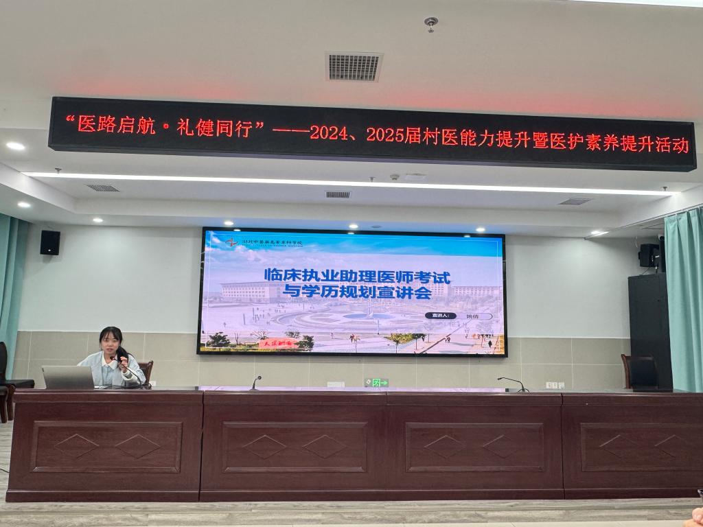 为深化学校与江陵县校地合作,切实提升基层医疗卫生人员专业素质与服务能力,助力村医职业发展,9月22日下午,学校临床医学院、护理学院、公共基础学院携手江陵县卫健委,共同举办“2024、2025 届村医执业助理医师考前培训暨医护素养提升活动”。