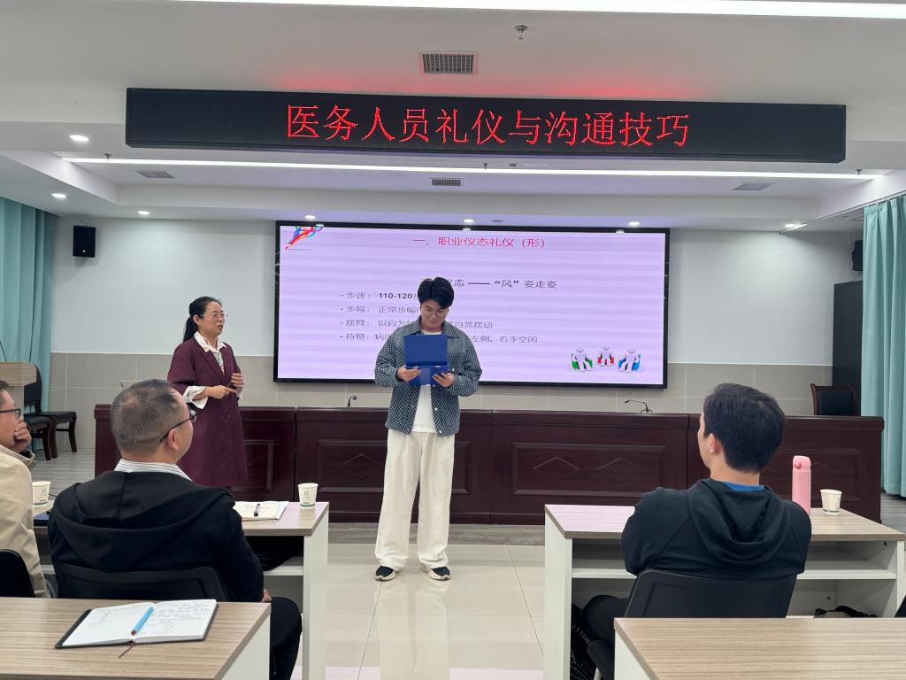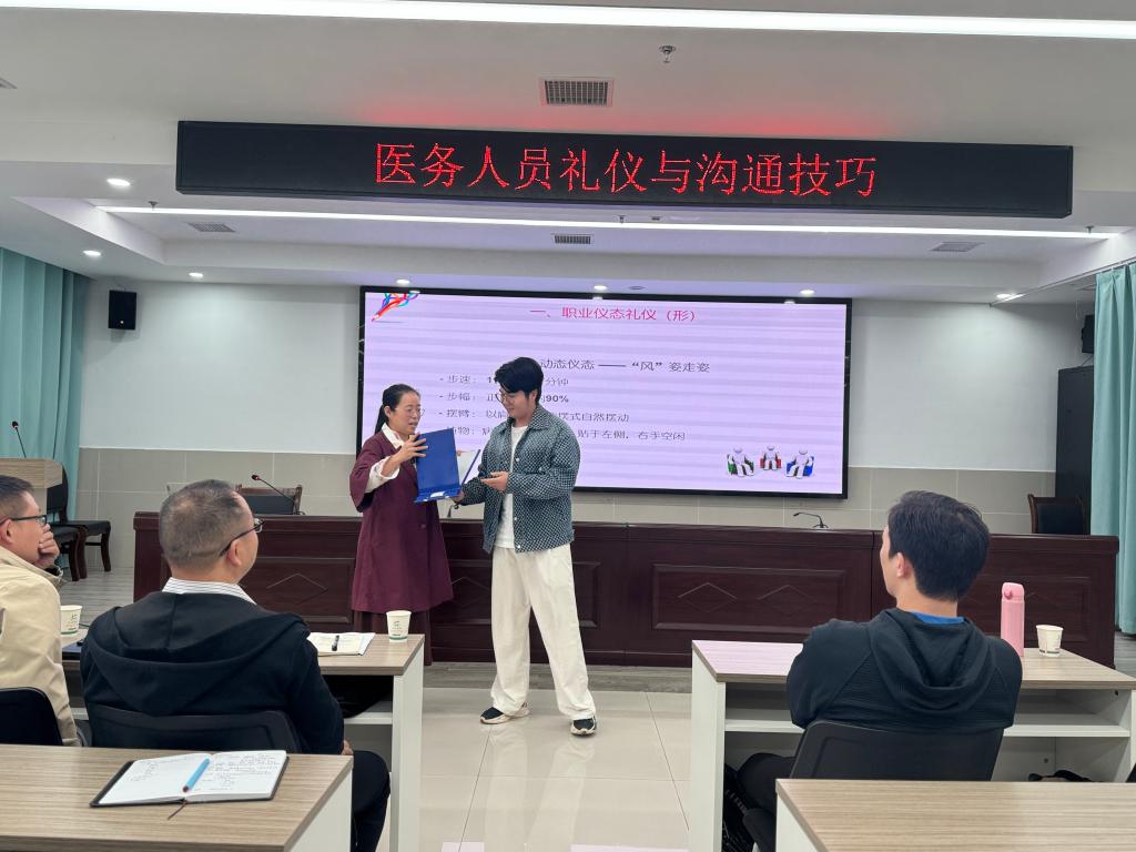 杨彦博士带来《精雕细琢,臻于至善——医务人员职业风范与沟通艺术》培训。她从基层医疗服务实际出发,以“如何让群众感受到更贴心的医疗服务”为核心,从形象塑造、心态调整、语言表达、行为规范四个维度展开讲解。在形象塑造环节,杨彦博士结合村医工作场景,示范了规范的着装、站姿与接诊礼仪;在沟通技巧部分,她通过模拟“与老年患者沟通”“告知病情注意事项” 等真实案例,指导村医运用“倾听式回应”“通俗化解释”等方法,化解沟通矛盾,提升患者信任感。“以前跟村民沟通总怕说不到点子上,这次培训学会了怎么用他们听得懂的话讲病情,太实用了!”一位参训村医在课间交流时说道。