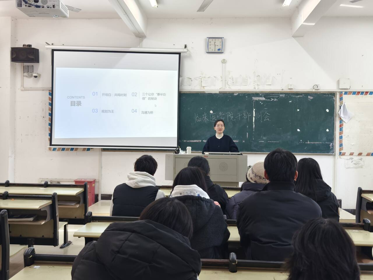 为提升学生干部的工作能力与服务意识,全面保障学生成长与发展,临床医学院于11月26日上午在教学楼410教室召开第七次学生干部培训会。本次培训以“高效能学生干部——事半功倍的工作艺术”为主题,由学生科向云老师主讲。