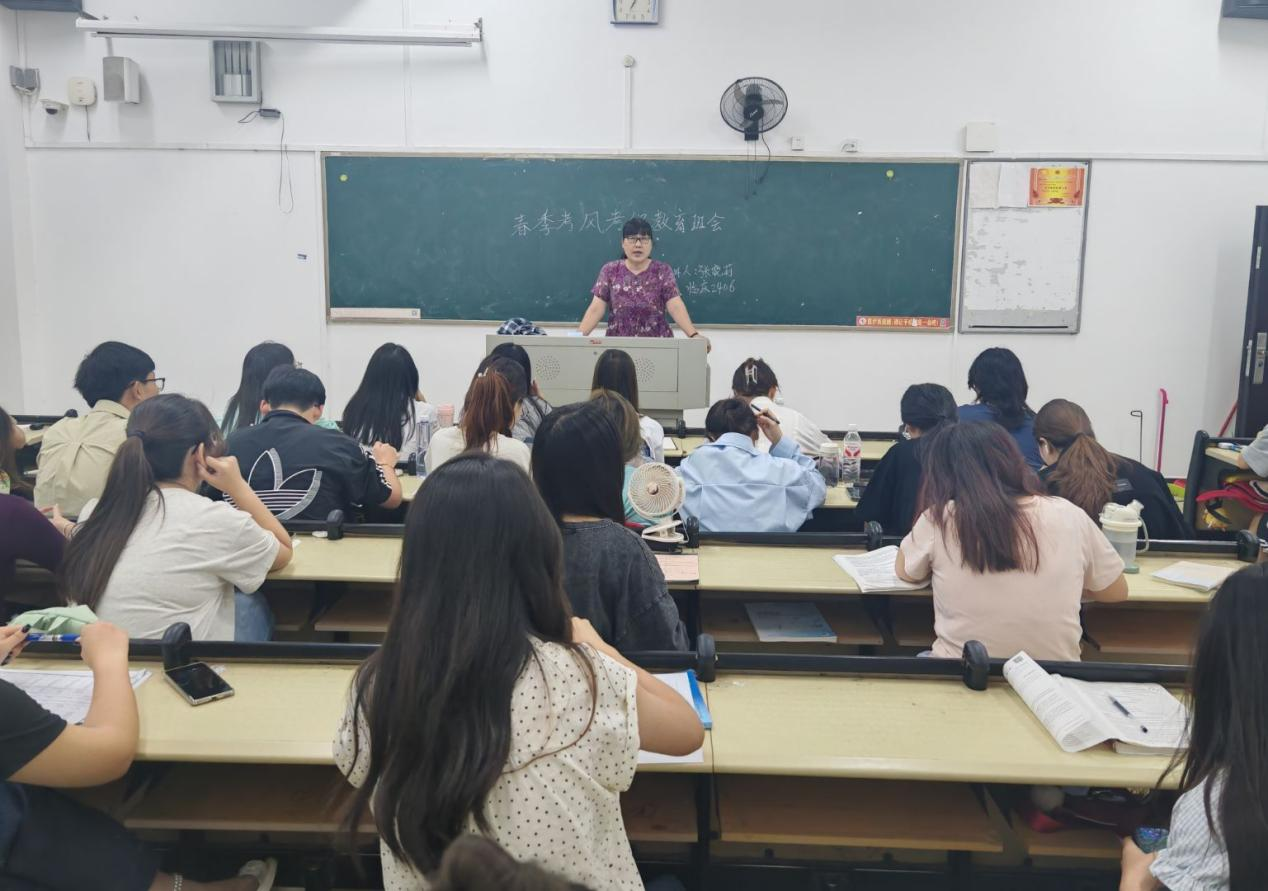 班会开始,主持人以“诚信立学,医者初心”为核心,强调考风考纪对医学专业学习的特殊意义,医学领域的诚信不仅关乎学业公平,更关联未来临床执业的责任与担当。随后,各班通过政策解读、案例警示、互动讨论等多元形式展开教育:结合《国家教育考试违规处理办法》及学校违纪处分规定,逐条明确携带通讯设备、代考替考、抄袭作弊等行为的认定标准与处罚后果;分享近年来高校及医学考试中的典型违纪案例,以真实的处分结果警醒同学们摒弃侥幸心理,严守纪律红线。