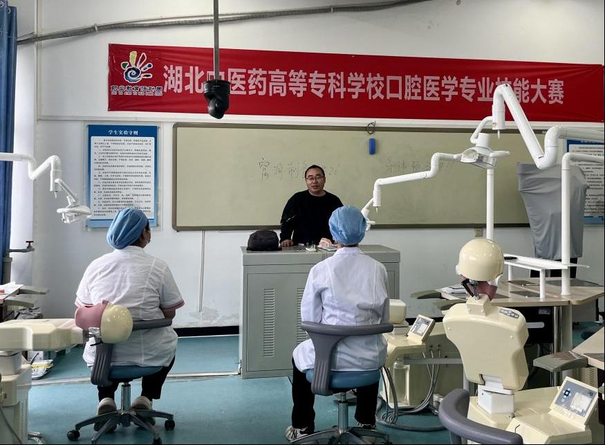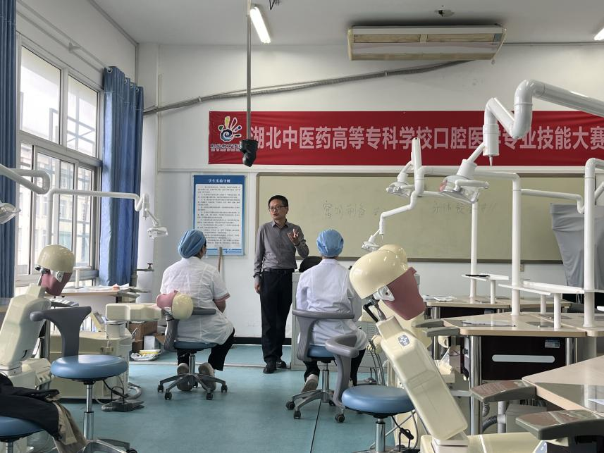 为全力备战2025年湖北省医学职业技术院校口腔医学(技术)专业技能竞赛,10月11日下午,学院精心组织口腔医学技能模拟赛,以赛代练检验备赛成效。学院院长曹礼荣、党总支书记管祥兵、副院长李丽、党总支副书记刘红、口腔教研室主任胡倩及口腔教研室全体教师全程参与,为参赛学子鼓劲助威。
