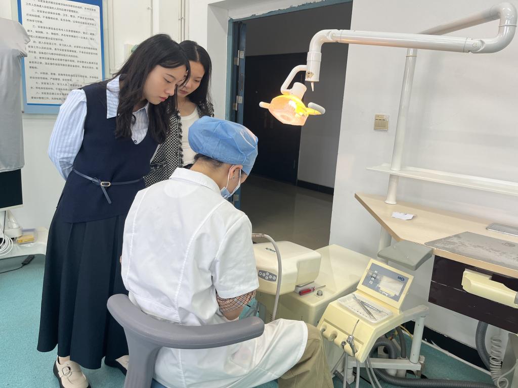 本次模拟赛聚焦牙体预备与窝洞制备两大核心竞赛项目。李佾芮、王婧妍、郭栩彤等三名参赛同学精神饱满、有条不紊,在操作台上精准施展专业技能——手持器械手法娴熟,牙体预备塑造细致入微,窝洞制备规范标准,每一个动作都展现出连日苦练的扎实功底。赛场旁,指导教师们认真观察记录,不时针对操作细节进行点评指导,现场学习氛围浓厚。