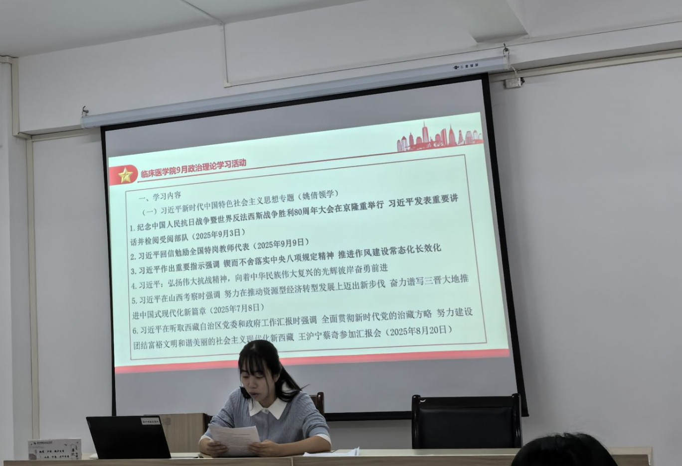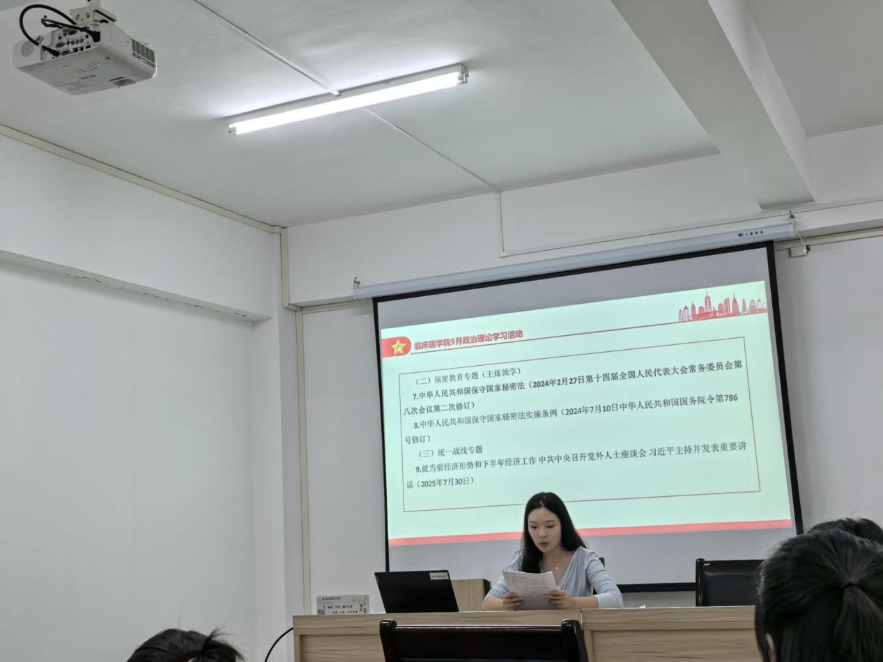 9月18日,临床医学院在212会议室开展9月份政治理论学习,会议由学院教工党支部书记李丽主持,临床医学院全体教职工参加会议。