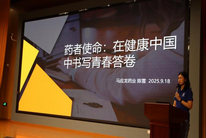 来自校企合作单位——马应龙药业集团马应龙大学校教务管理中心主任陈雪,以《药者使命:在健康中国中书写青春答卷》为题,围绕“药者初心”、专业前景、中医药行业趋势及职业生涯规划四个方面展开分享。她结合行业实际,深入剖析中医药的发展机遇,强调尽早确立职业目标的重要性,并鼓励同学们打好扎实专业基础,主动谋划未来发展路径。