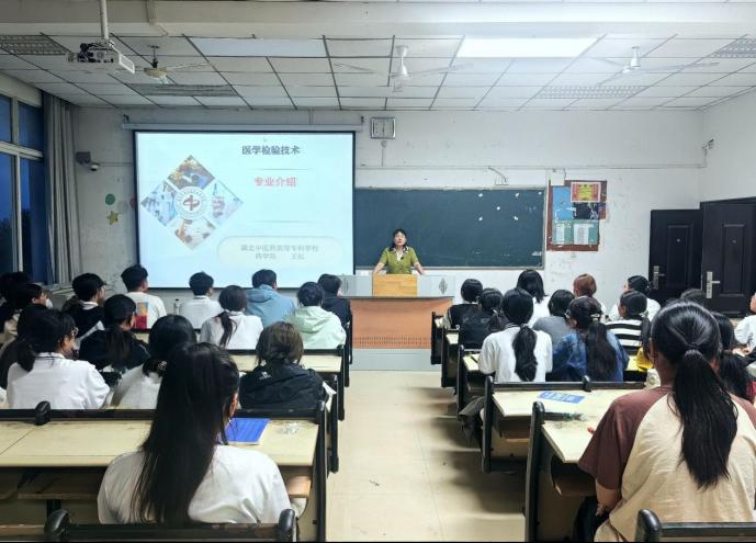 本网讯(学生记者:魏晓瑞 杜雯雯)为帮助2025级新生尽快适应专业学习,明确职业发展方向,9月18日晚18:30,药学院以“校企共育·筑梦启航”为主题,在综合楼学术报告厅、教学楼509及510教室同步开展新生专业思想教育。本次活动围绕药学大类、医学检验技术、智能医疗装备三个专业展开,采取“学校与企业相结合,学习计划与职业规划相结合”的模式,由企业专家讲解行业发展现状和行业企业人才需求,学校专业教师介绍学校学院情况和专业学习方法,共同指导学生学习计划和职业规划的方向,全面深化新生对专业的系统认知。