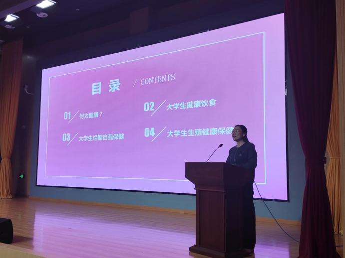讲座以“何为健康”破题,围绕“生理—心理—社会适应”三位一体健康观,系统梳理女性全生命周期健康管理要点。张正娥结合自身多年临床经验,详细讲解大学生经期自我保健、健康饮食等实用知识,阐明合理膳食对调节内分泌、增强免疫力的作用。并聚焦“大学生生殖健康保健”,普及疾病预防知识,辨析常见误区,引导学生树立科学观念。