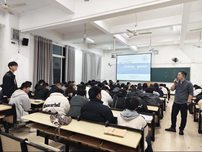 王豪结合自身丰富的工作实践,分享了职业规划的关键要素。他建议同学们在校期间应扎实掌握专业基础知识,筑牢学术根基,为未来职业发展奠定坚实基础。在就业选择方面,他提出应结合个人兴趣与专业背景,精准定位适合自身的职业路径。“正确的职业选择,是实现长远发展的重要保障。”王豪以亲身经历为例,为同学们的职业生涯规划提供了切实可行的借鉴。