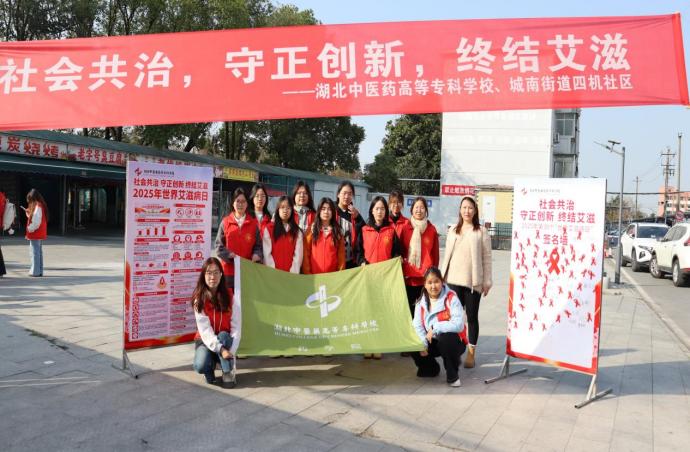 本网讯(学生记者:魏晓瑞 杜雯雯)2025年12月1日是第38个“世界艾滋病日”。为响应“社会共治,守正创新,终结艾滋”的宣传主题,进一步普及艾滋病防治知识、增强居民健康防护意识,湖北中医药高等专科学校中医学院、药学院走进荆州区城南街道四机社区开展防艾宣传。活动以中医药文化为特色载体,创新宣传形式,推动防艾知识与传统养生智慧深度融合,走进社区、贴近居民。