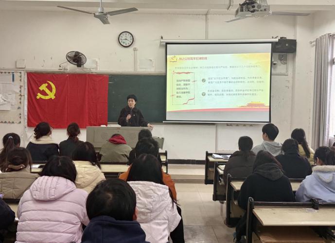 孙洁围绕党的二十届四中全会对全面从严治党提出的新要求,紧扣“纪律建设与担当作为”主题,系统阐释了新时代加强纪律建设的重要意义与实践路径。她指出,当前正处于“十五五”规划启动的关键时期,全体党员必须牢固树立纪律意识和规矩意识,将严的要求内化于心、外化于行,以过硬作风和实际行动助力学院高质量发展。