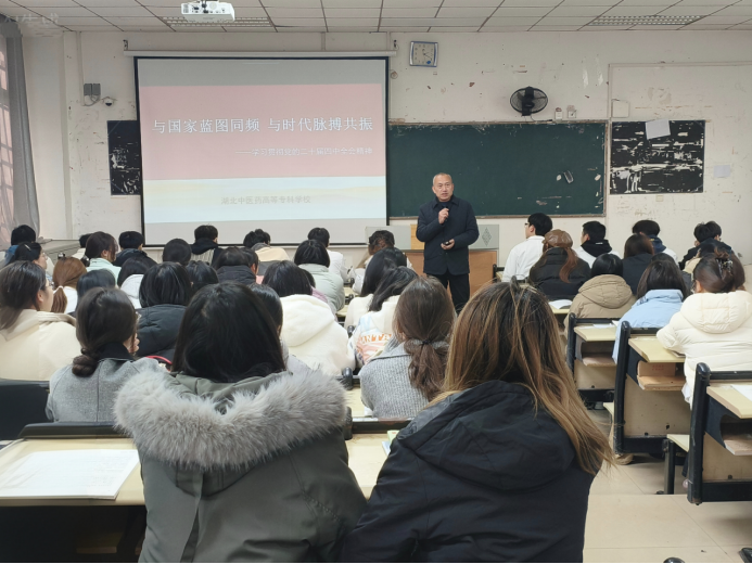 本网讯(学生记者:蒲思源 陈丽梅)为引导学生深入学习领会党的二十届四中全会精神,自觉将个人成长融入国家发展大局,12月18日下午,学校党委委员、副校长沈莉兵在西教学楼206教室,为药学2501、药学2502班全体学生讲授了题为“与国家蓝图同频 与时代脉搏共振”的专题党课。