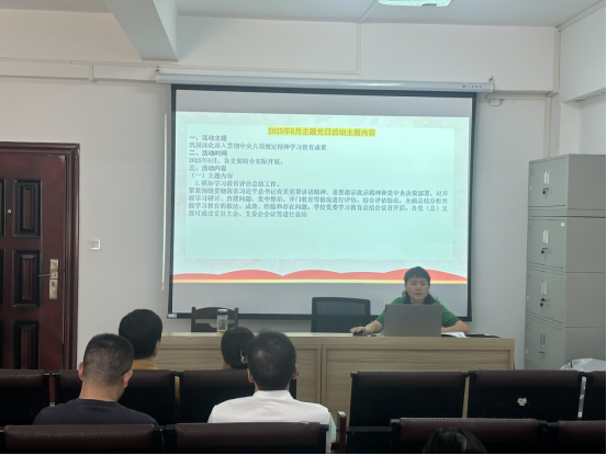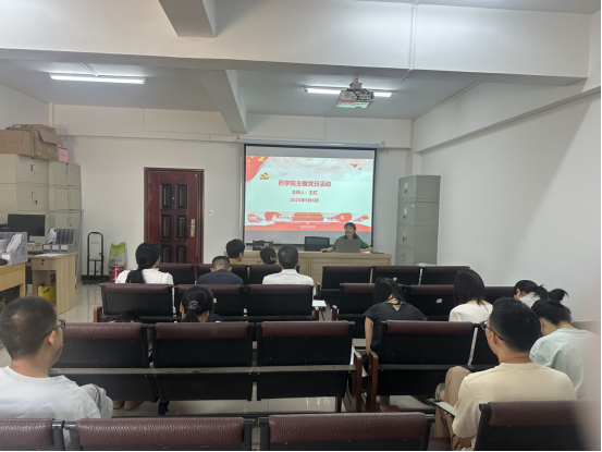 本网讯(通讯员 胡梦圆)9月4日上午,药学院教工党支部在学院办公楼209开展7-8月政治理论学习及主题党日活动,药学院副院长王红主持会议。