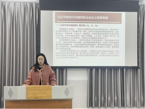 胡梦圆老师还领学了《习近平在中共中央政治局第二十三次集体学习时强调·健全网络生态治理长效机制·持续营造风清气正的网络空间(2025年11月19日)》《习近平对全面依法治国工作作出重要指示强调·坚持党的领导人民当家作主依法治国有机统一·合力开创法治中国建设新局面(2025年11月18日)》等文件。通过学习,老师们深刻领悟到网络生态治理的重大意义,积极思考在教学中引导学生正确利用网络资源、培育网络文明素养的有效方法,以及如何将法治观念融入专业教学,增强学生的法律与合规意识。