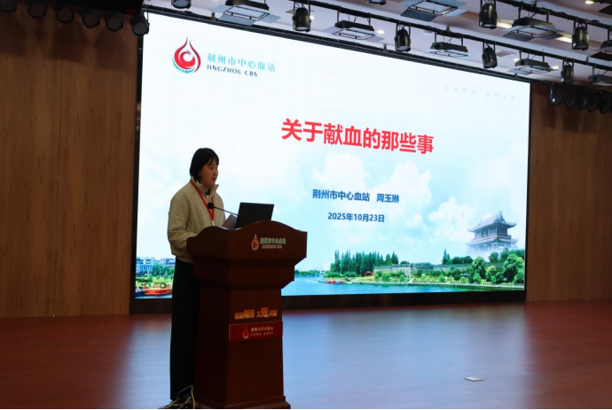 欢迎仪式上,荆州市中心血站党总支委员、工会主席刘学松致辞,强调了无偿献血的重要意义,并鼓励同学们勇于担当、奉献爱心。周玉琳老师的讲座系统讲解了血液生理知识、献血政策与流程,并解答了同学们的疑问。