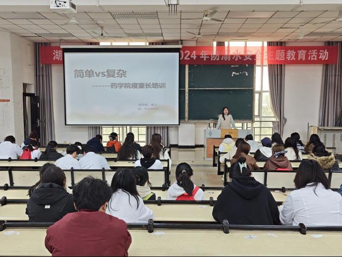 本网讯(学生记者:李诗怡 姚思颖)为进一步加强寝室安全管理,提升学生安全防范意识与心理健康关怀能力,药学院于2025年10月27日11:30在教学楼301教室组织召开2025级全体寝室长专题培训会。本次培训由药学院团总支书记骆文主讲,全体2025级寝室长参加。