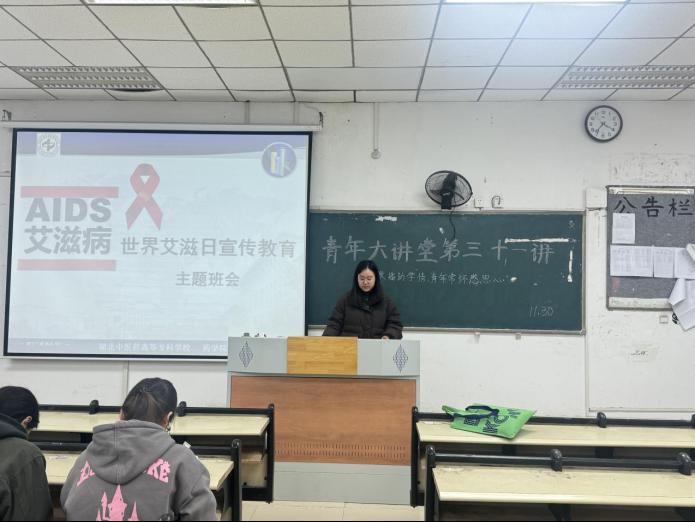 本网讯(学生记者:郭宇慧)为筑牢校园防艾屏障,护航青年学子健康成长,在世界艾滋病日来临之际,药学院于2025年11月30日19:00组织各班级在自习室开展预防艾滋病宣传教育主题班会。班会由各班辅导员主讲,全体同学共同参与。