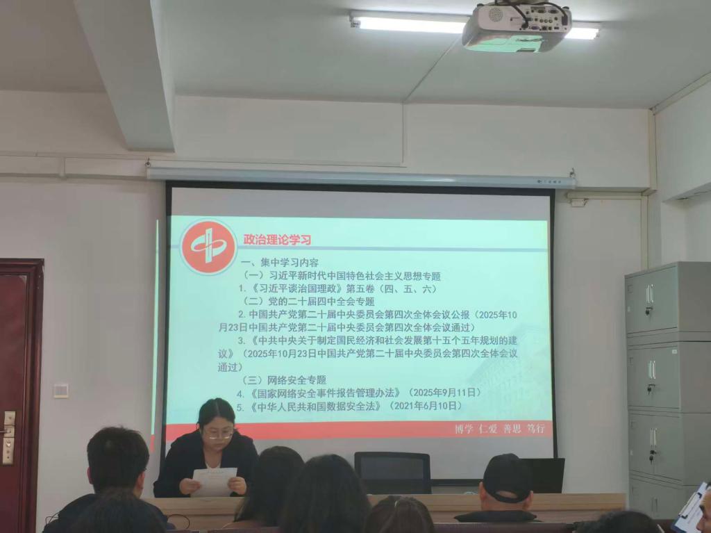 本网讯 中医学院于11月11日中午在学院楼209会议室开展11月份政治理论学习,会议由学院党总支书记杨敬博主持,中医学院全体教职工参加会议。 中医临床教研室的老师们领学本次政治理论学习,他们依次领学了《<习近平谈治国理政>第五卷(四、五、六)》《中国共产党第二十届中央委员会第四次全体会议公报》《中共中央关于制定国民经济和社会发展第十五个五年规划的建议》,宣讲学习了《国家网络安全事件报告管理办法》《中华人民共和国数据安全法》的内容。 学习过程中,老师们结合自身岗位实际,对二十届四中全会的会议精神,他们分享了自己的心得体会。通过此次学习,大家进一步加深了对相关政策法规和理论知识的理解,为今后更好地开展工作奠定了坚实的思想基础。