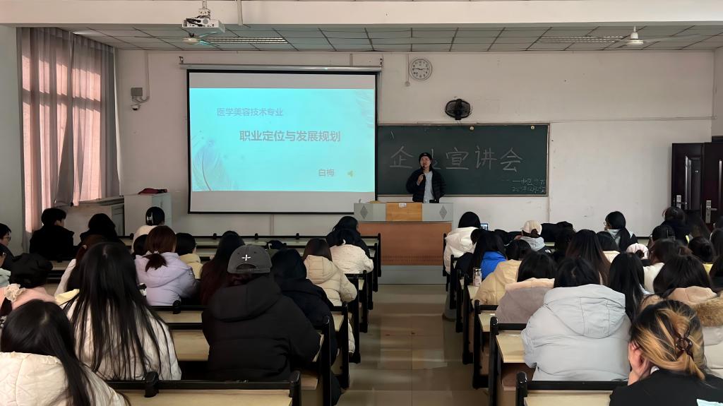 为深化校企合作,切实提升医学美容技术专业学生的职业认知与就业能力,2025年12月25日下午,中医学院在605教室成功举办“美业职场启航”专题企业宣讲会。本次宣讲会特邀武汉九龙弘美化妆品有限公司资深职业导师白梅担任主讲,聚焦医学美容行业发展趋势与人才需求,为同学们带来了一场兼具深度与广度的职业规划指导。 白梅老师以“人生是可以规划出来的”为核心主题,系统剖析了当前美业发展的背景与现状。她指出,随着人们生活水平的提高与审美观念的提升,医学美容行业正迎来前所未有的发展机遇,专业人才需求持续增长。她结合PPT内容,详细阐述了美容师、美容顾问、美导、美容讲师、品牌管理等多类职业岗位的职责特点与能力要求,强调“专业力、服务力、沟通力、学习力”是美业人立足与发展的四大支柱。 在职业发展路径方面,白梅老师通过“守店开店”与“发挥特长服务市场”双主线模型,生动展示了从基础岗位到管理岗位、从技术走向品牌的多元成长可能。她鼓励学生不仅要掌握扎实的专业技能,更应树立长期职业愿景,将个人成长与行业发展紧密结合,成为“美的传递者、健康的守护者、心灵的陪伴者”。 宣讲会还设置了模拟面试与互动问答环节。同学们围绕“职业选择动机”“客户服务技巧”“行业发展趋势”等议题展开热烈讨论与实操演练。白梅老师结合自身多年从业经验,对同学们的现场表现进行了细致点评,强调“自信表达、专业素养、情绪稳定”在职场竞争中的关键作用。 本次宣讲会不仅为学生提供了直面企业、了解行业的平台,更通过“理论引导+实践模拟”的形式,帮助学生进一步明确职业定位,增强就业信心。学院未来将继续推进校企协同育人机制,通过组织专题讲座、企业参访、岗位实训等系列活动,持续赋能学生职业发展,助力更多学子实现高质量就业与人生价值。(朱小玉、高梓琦/文、摄 肖裕华/一审 黄万凌/二审)