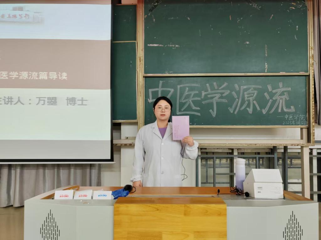 本网讯 为深化同学们对中医发展脉络的系统认知,夯实专业理论根基,引导学子感悟中医传承的文化内核,主题为“中医学源流”的讲座于2025年11月12日在教学楼513教室顺利开讲。由学院中医经典教研室的万曌老师主讲,24、25级中医学相关专业学生到场参与,现场学术氛围浓厚。 讲座伊始,万老师以“中医从何而来”为引,凭借翔实的史料文献与生动的医家典故,系统梳理了中医数千年的发展脉络。她从远古时期“巫医分离”的医学雏形讲起,重点解析春秋战国至两汉时期《黄帝内经》《伤寒杂病论》等经典著作的成书背景——“《黄帝内经》构建了中医‘整体观念’的理论框架,而张仲景在乱世中著成的《伤寒杂病论》,则确立了‘辨证论治’的临床核心,这两部典籍共同奠定了中医的根基”,通俗的解读让同学们直观理解了经典的价值。 随后,万老师聚焦宋金元“学术争鸣”与明清“温病革新”两个关键阶段,生动阐释了“金元四大家”的流派主张,以及叶天士、吴鞠通等医家创立“卫气营血辨证”的时代意义,展现了中医“随实践发展、因时代创新”的活力。她还结合自身临床经验,分享了经典理论在现代诊疗中的应用案例,让同学们感受到中医“古为今用”的实用价值。 互动环节中,同学们围绕“经典如何入门”“现代技术与中医传承的结合”等问题踊跃提问,万老师逐一解答,并推荐《医学三字经》等入门典籍,鼓励大家“先通源流,再读经典,才能真正读懂中医的智慧”。 整场讲座深入浅出、干货满满,同学们纷纷表示,不仅理清了中医发展的时间线,更对“传承精华、守正创新”的中医精神有了更深的体会。此次讲坛也为学院营造了“读经典、悟医道”的专业学习氛围,助力学子筑牢中医学习的文化与理论根基。(王宇银、陈晨/文、摄 肖裕华/一审)