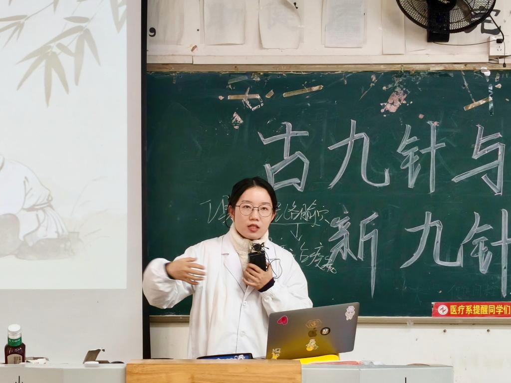 本网讯 为深化同学们对针灸器具发展脉络的认知、夯实专业知识基础,2025年12月11日14:00,中医学院“古九针与新九针”专题讲座在我校J-407教室成功举办。此次讲座由向天楠老师主讲,中医学院24级、25级针灸推拿及中医专业的学生共同参与。 讲座伊始,向天楠老师系统梳理了从“古九针”到“新九针”的演变脉络:她首先阐释了古九针“各有所主、各司其职”的临床逻辑与辨证施针思想,结合操作要点与禁忌,强调了“因人制宜”的核心治疗原则;随后聚焦新九针的代表性针具,以适用于慢性病调理的鍉针、兼具圆钝特质与梅花针优势的磁圆梅针为例,详细解析了其结构特点及在现代临床中的拓展应用。整场讲座将理论深度与器具实操相结合,生动展现了针灸学术“在传承中创新、在创新中传承”的生命力。 此次讲座搭建起传统针灸智慧与现代临床技术的交流桥梁,既拓宽了学子的专业视野,更让大家深刻领悟到“传承不离古、创新不离宗”的针道精髓,为同学们深耕中医专业、弘扬中医国粹注入了强劲动力。(陈雅雯、陈晨、戴义玲/文、摄)