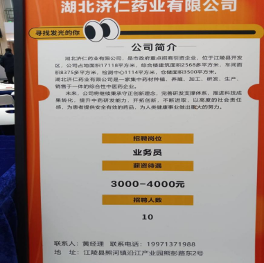 公司简介: 湖北济仁药业有限公司,是市政府重点招商引资企业,位于江陵县开发区,公司占地面积17118平方米,综合楼建筑面积2568多平米,车间面积8375多平方米,检测中心1114平方米,仓储面积3500平方米。湖北济仁药业有限公司是一家集中药材种植、养殖、加工、发、生产、销售于一体的综合性中医药企业。 未来,公司将继续秉承守正创新理念,完善研发支撑体系,推进科技成果转化,提升中药研发能力,开拓创新,不断进取,以高度的社会责任感,为患者提供安全有效的药品,为人类健康事业做出重大的努力。
