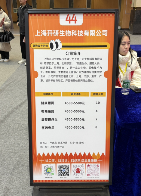 公司简介: 上海开研生物科技有限公司总部位于上海,公司宗旨:“关爱生命,服务人类,创造财富,回报社会”。是一家以生物、医电技术为主,医疗器械、生物医药及健康产业为辅的综合类民营企业。公司产品现已覆盖北京、上海、江苏、浙江、广东、甘肃等省市地区,产品销量位居同行业首位。 健康顾问 联系方式: