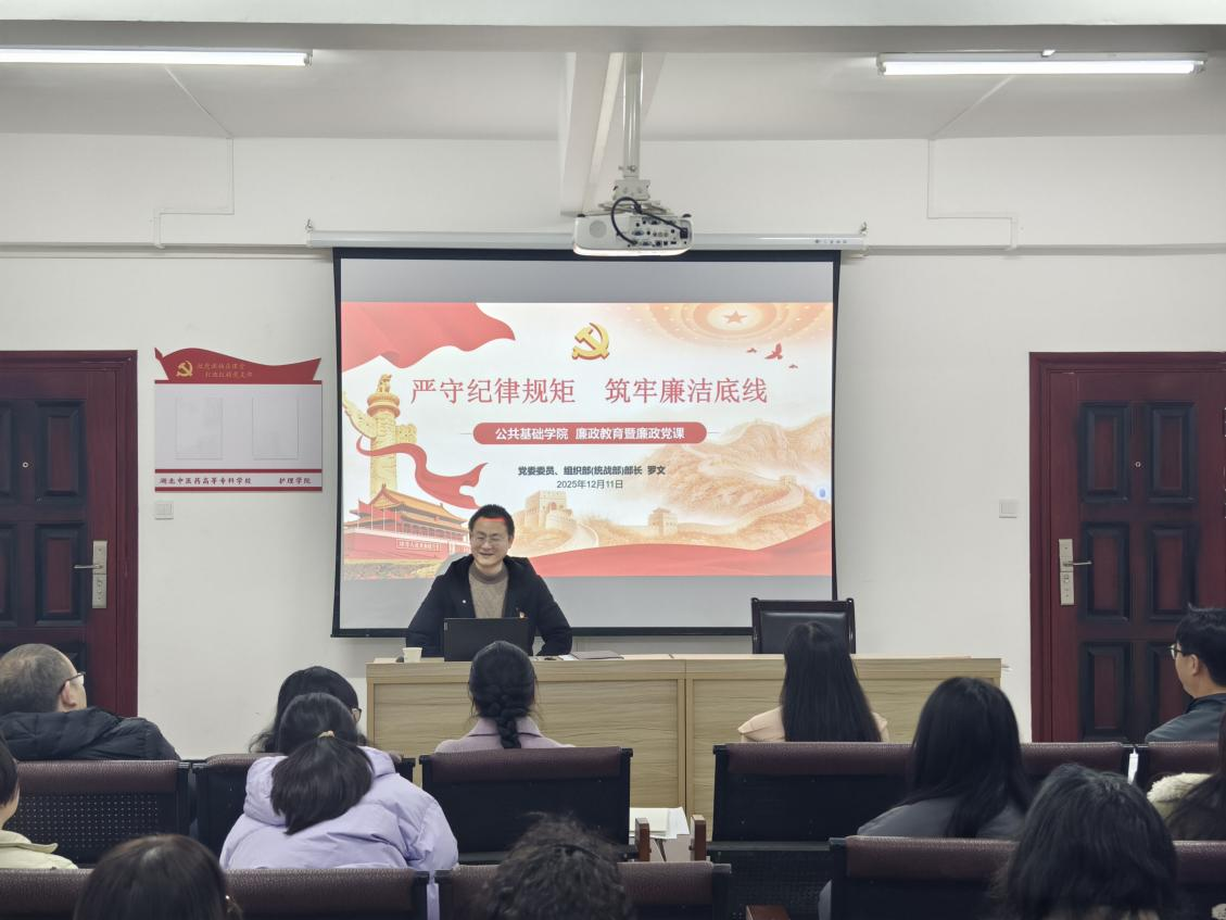 | 严守纪律规矩,筑牢廉洁底线 ——学校党委委员、组织部(统站部)部长罗文赴公共基础学院开展廉政教育谈话讲授廉政党课 | |