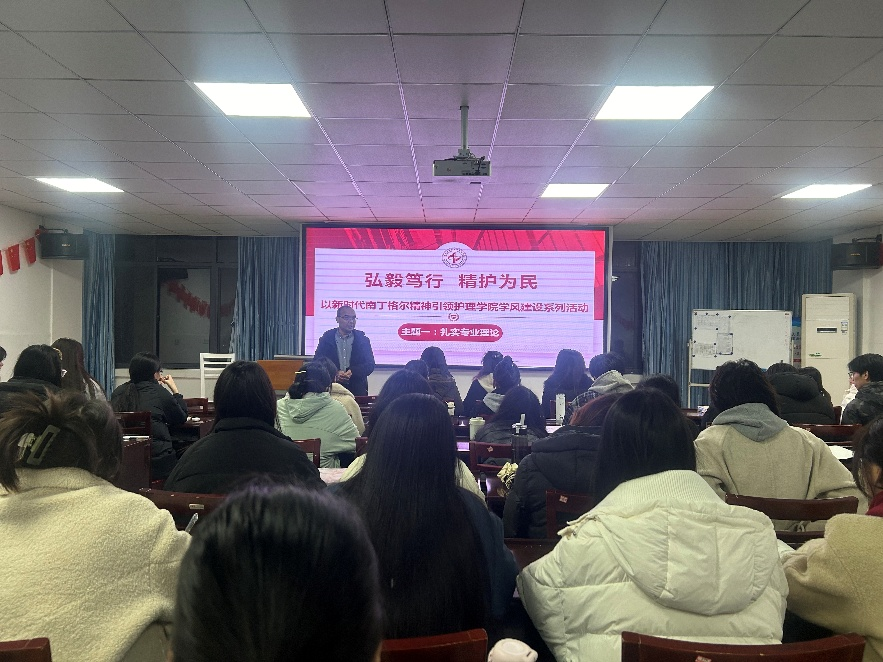 活动中,郑蓉院长指出,护理是一门科学与艺术相结合的学科,而扎实的理论知识是未来职业发展的基石。无论是疾病的护理评估、药物的合理使用,还是患者的心理支持,都离不开理论知识的指导。郑院长希望同学们在学习的过程中,能够立治学之基,以严谨态度夯实医学基础,构建“理论-实训-临床”三维知识体系,培养终身学习能力。随后,郭丽君老师从学习态度的重要性出发,引导同学们认识学习态度是影响学习成效的重要因素。她强调,只有以积极主动的态度对待理论学习,才能真正掌握护理知识的精髓,并在未来的临床实践中游刃有余。郭老师从明确学习目标、主动学习、勤于思考、持之以恒、克服困难、团队合作、共同进步四个方面,为同学们提供了宝贵的学习建议。在座的同学们纷纷表示,将牢记师长的教诲,以更加积极的态度投入到理论学习中,为成为一名优秀的护理人才而努力奋斗。