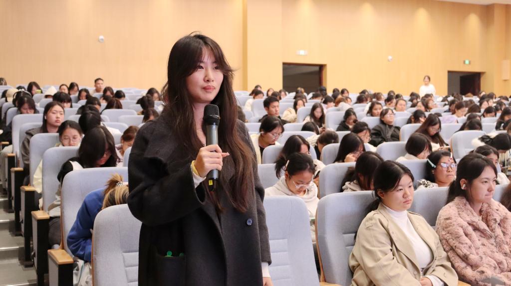 讲座以“何为健康”破题,围绕“生理—心理—社会适应”三位一体健康观,系统梳理女性全生命周期健康管理要点。张正娥结合自身多年临床经验,详细讲解大学生经期自我保健、健康饮食等实用知识,阐明合理膳食对调节内分泌、增强免疫力的作用。并聚焦“大学生生殖健康保健”,普及疾病预防知识,辨析常见误区,引导学生树立科学观念。
