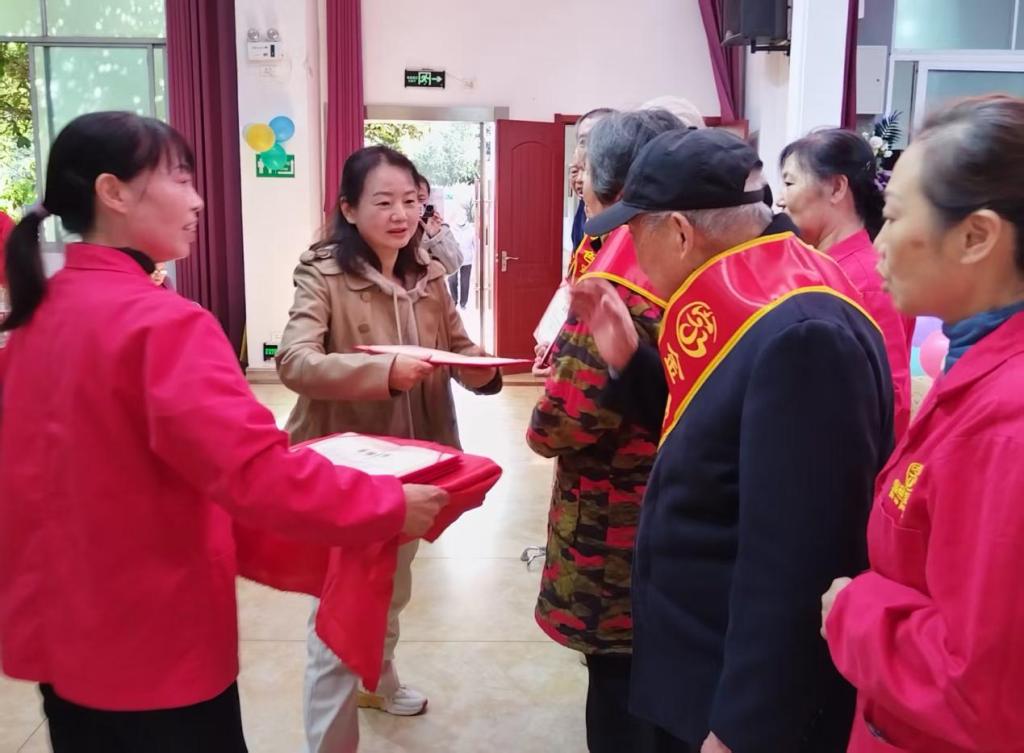 金色家园老年合唱团表演结束后,郑蓉院长为社区“才艺老人”颁发奖项,表扬他们在社区文化生活中的积极表现,激励更多老年人参与文体活动,展现自我风采。