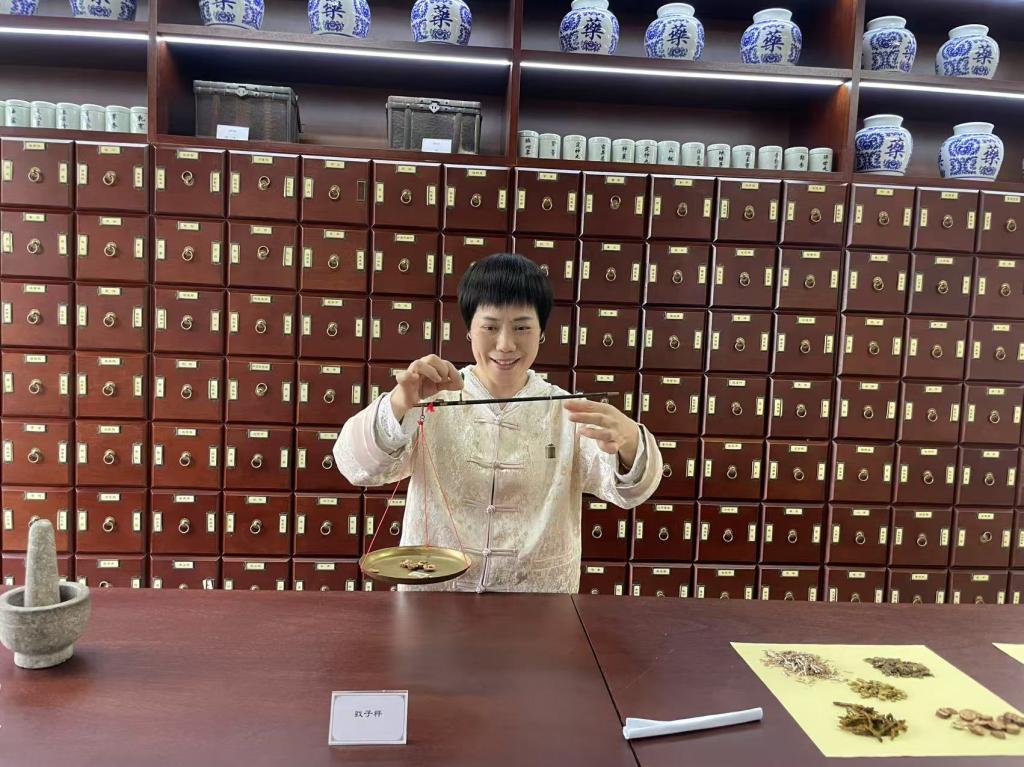 在丰富多样的体验环节中,教师党员们热情高涨、积极参与。在中药馆的保健互动区内,大家跟随指导练习五禽戏、太极拳,在一招一式的起落转承中,亲身体悟中医药“治未病”的养生智慧,感受传统导引术对身心健康的独特滋养。