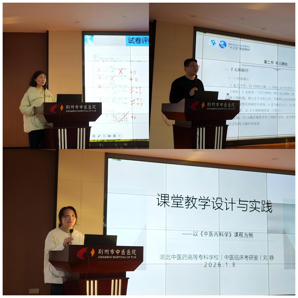 新闻网讯(通讯员 杜相宇 白冰怡)为深入贯彻医教协同、产教融合教育理念,破解中医教学与临床衔接壁垒,1月8日下午,中医学院与中医临床学院在荆州市中医医院仁济楼709学术报告厅联合举办“示范引领促提升,医教融合育良才”主题教学研讨会。中医学院院长孙权、党总支书记杨敬博、副院长黄万凌,中医临床学院院长张朝驹及双方骨干教师、教学管理人员共百余人参会,会议由中医临床学院副院长李琳主持。