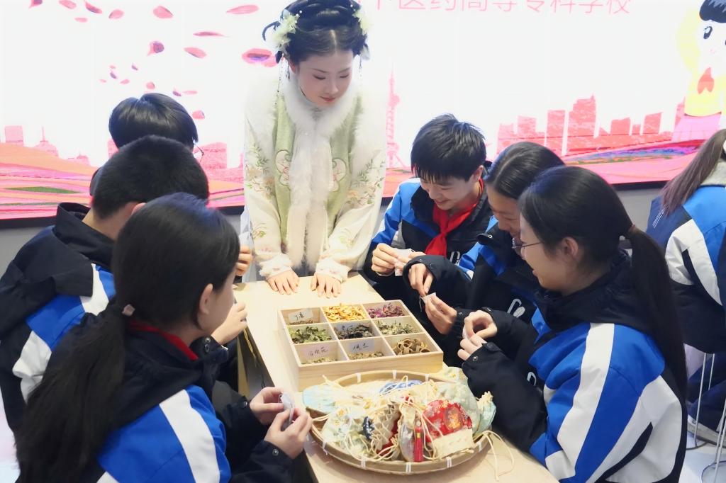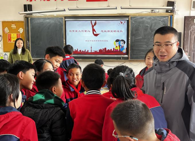 “大哥哥大姐姐,你们下学期还来吗?今天收获真的太大了,不仅了解了强国知识,还认识了这么多神奇的中草药!”来自荆州小学城南校区五年级8班学生卢艺菡拉着青马班学员的衣袖激动地说。为深入学习贯彻党的二十届四中全会精神,全面落实习近平总书记关于“大思政课”建设的重要指示要求,扎实推进大思政课改革创新与荆州市大中小学思政课一体化共同体建设走深走实,充分发挥青年马克思主义者培养工程育人功能,2025年12月22日,湖北中医药高等专科学校马克思主义学院党支部组织青马班骨干成员,赴荆州小学、沙市实验中学宣讲党的二十届四中全会精神。此次活动以“强国建设”为核心主线,分别从“科技强国”“体育强国”“教育强国”“文化强国”等维度对全会精神进行深度解读,并指导学生制作手工香囊、感受中医药文化,实现了理论宣讲与实践育人的深度融合。