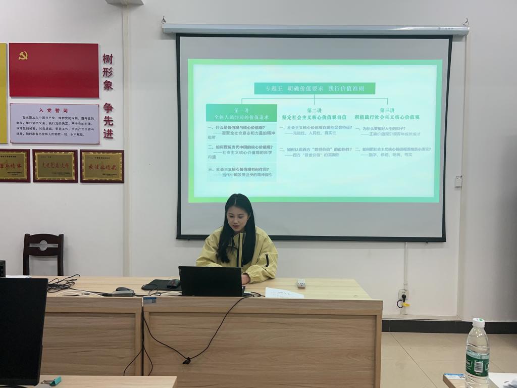 在研讨环节,承担第四章备课任务的方洁老师首先进行了分享。方洁老师以第四章“明确价值要求,践行价值准则”这一核心主题为切入点,严格遵循教材的整体架构展开教学规划。她将该章节细分为“全体人民共同的价值追求”“社会主义核心价值观的显著特征”“积极践行社会主义核心价值观”三个小节,旨在引导学生正确认识社会主义核心价值观的重要意义与核心内涵。在教学实施上,方洁老师注重理论讲授与现实生活的深度融合。将理论知识扎根于生动的实际案例,并进一步将教育引导延伸至学生的日常实践,鼓励大家从生活细微处着眼,从点滴小事中践行,最终将社会主义核心价值观内化于心、外化于行,努力成长为其坚定的信仰者、积极的传播者与模范的践行者。