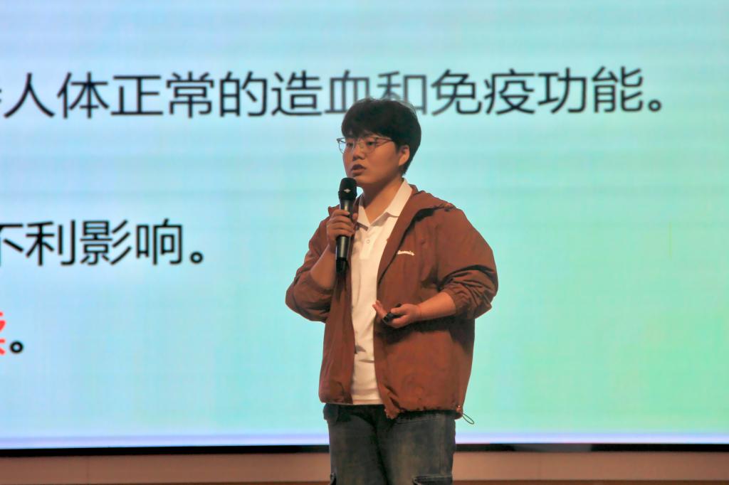 在秦怡老师精彩的分享结束后,讲座进入造血干细胞捐献知识讲解环节。造血干细胞捐献宣讲员裴家梦从专业角度,详细且清晰地为大家揭开了造血干细胞捐献的神秘面纱,让师生们对这一“为血液病患者带去重生希望的生命种子工程”有了更全面、更科学的认识。