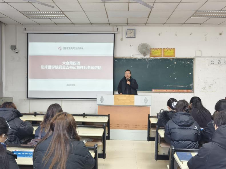 大会伊始,回顾总结2025年。过去一年,临床医学院依托“大医文化节”,围绕“立德树人”根本任务开展文化活动,营造了学风与育人氛围。活动中涌现先进典型,经评选,5名同学获“国家奖学金”,197名同学被评为校、院级“优秀大学生”,34名同学获校级“仁爱笃行之星”称号。学院号召全体同学以先进典型为榜样,在新的一年里,于学习与工作中再创佳绩。