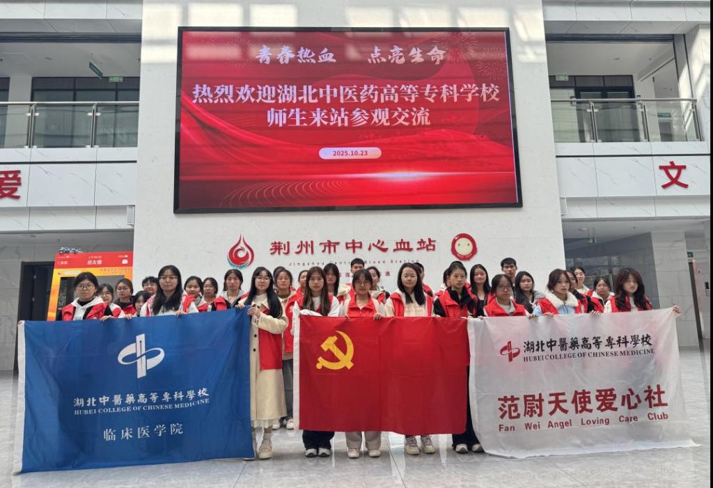 为践行立德树人理念,融合医学知识科普与志愿服务精神培育,引导医学生树立正确职业价值观,2025年10月23日,学院范尉天使爱心社组织师生走进荆州市中心血站(荆州市无偿献血科普基地)开展参观交流活动,这既是理论联系实际的学习之旅,也是探寻医者初心、强化使命担当的实践之行。
